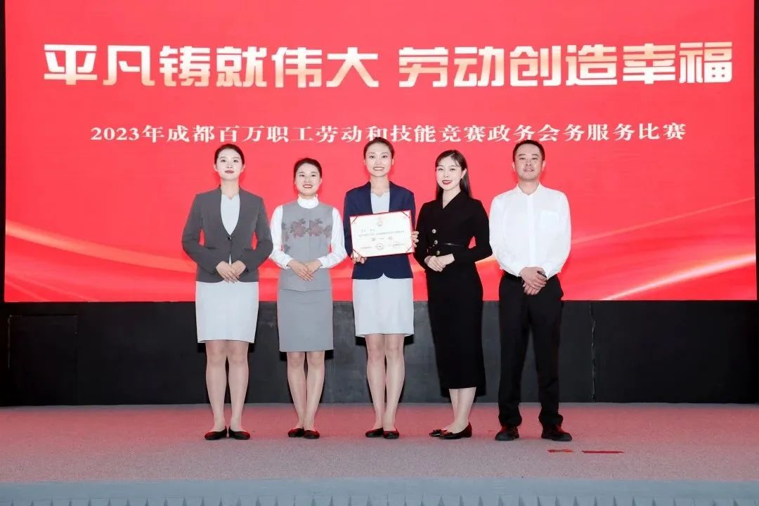 天府新城会议中心员工李杨荣获2023年成都百万职工劳动和技能竞赛政务会务服务比赛“第一名”、李彬荣获四川省第一届机关服务技能竞赛客房服务组别“优胜奖”。